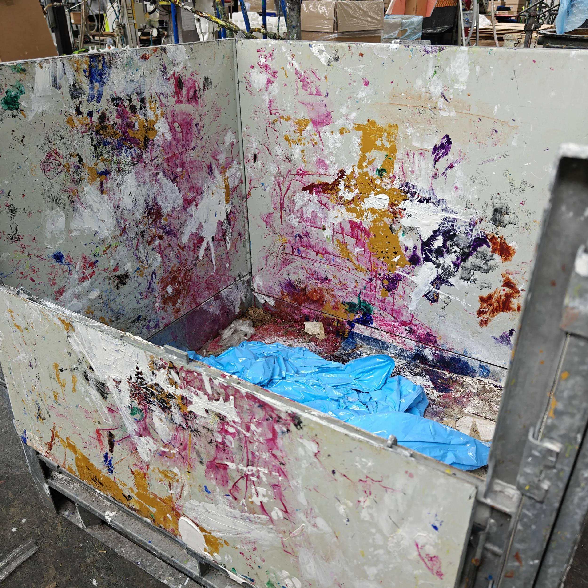 Myself and three other artists arrived at headquarters at 9.50am and were welcomed in by the wonderful Stephanie, who organises these tours (alongside her usual job role as a Digital Marketing Manager). We received our badges and high-vis jackets, and were joined by a very knowledgeable colleague John (a Process Chemist), for our introduction in the Reception area. We had a look at the current brands and supplies under the Daler-Rowney umbrella, and also had a look at some of their historic supplies which was great. I had brought in my own historic Rowney’s item (some Percy Pastels circa. 1940-1950) that I wished to find out about, and they were more than happy to discuss it with me. In fact, they had never seen it before and it was an interesting talking point for us all as a group. We finished our introduction with a brief history of the company itself and the building they’re now in.